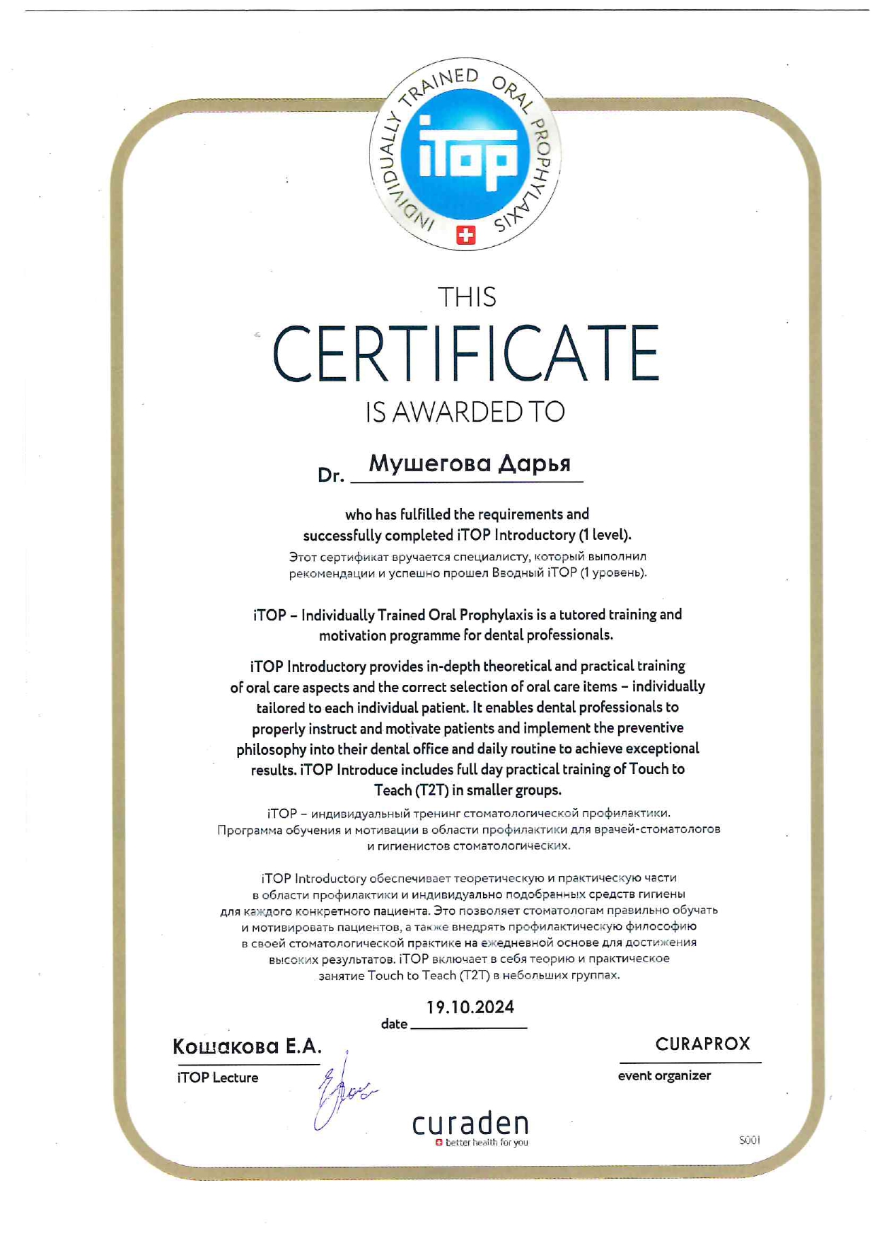 Окончила Красноярский государственный медицинский университет имени профессора В. Ф. Войно-Ясенецкого по специальности врач-стоматолог, затем прошла ординатуру и получила сертификат по ортодонтии.
